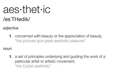 of, relating to, or dealing with aesthetics or the beautiful; artistic; pleasing in appearance : attractive… See the full definitionaesthetics, also spelled esthetics, the philosophical study of beauty and taste. It is closely related to the philosophy of art, which is concerned with the nature of art and the concepts in …Aesthetic means the pleasant, positive or artful appearance of a person or a thing. An example of the word is aesthetic is to say that a particular car is beautiful. adjective 5 3 …What is Aesthetics? Aesthetics is a core design principle that defines a design’s pleasing qualities. In visual terms, aesthetics includes factors such as balance, color, movement, …Aug 16, 2022 · August 16, 2022. Aesthetic value refers to the “beauty” or “appeal” of something. It is used in art, literature, and architecture, and in the fields of psychology and behavioral …Feb 14, 2022 · Aesthetics is a branch of philosophy that deals with art, taste, beauty, and the sublime. While aesthetic theories vary significantly from thinker to thinker, it is clear that …Dec 15, 2021 · The most popular examples of old money aesthetic fashion pieces are preppy style sweaters and pants, button-down shirts, blouse etc. #16 ANGELCORE AESTHETIC …Nov 09, 2021 · Musical aesthetics regard the beauty and taste of music and its creation. Because of this, it is considered a philosophy. Aesthetic in music is entirely subjective, …Definition: Ensō (n.) – circle; the perfection, elegance, completion, togetherness and enlightenment pertaining to the universe and everything within. Pronunciation: /ehn-so/ Word …