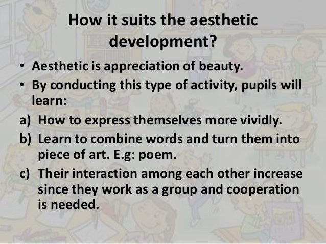 What is the meaning of aesthetic development?What is the meaning of aesthetic development?What are aesthetic activities?What are aesthetic activities?What does aesthetic treatment mean?What does aesthetic treatment mean?What is aesthetic stage?What is aesthetic stage?